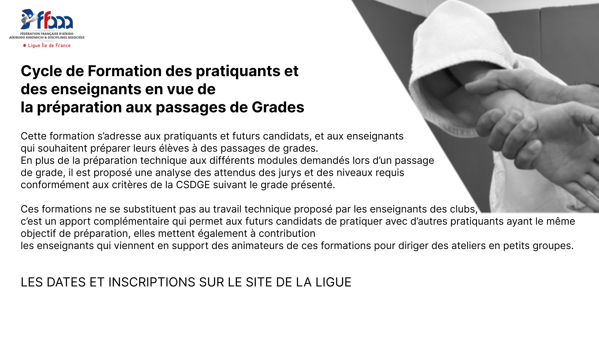Cycle de Formation des pratiquants et des enseignants en vue de la préparation aux passages de Grades